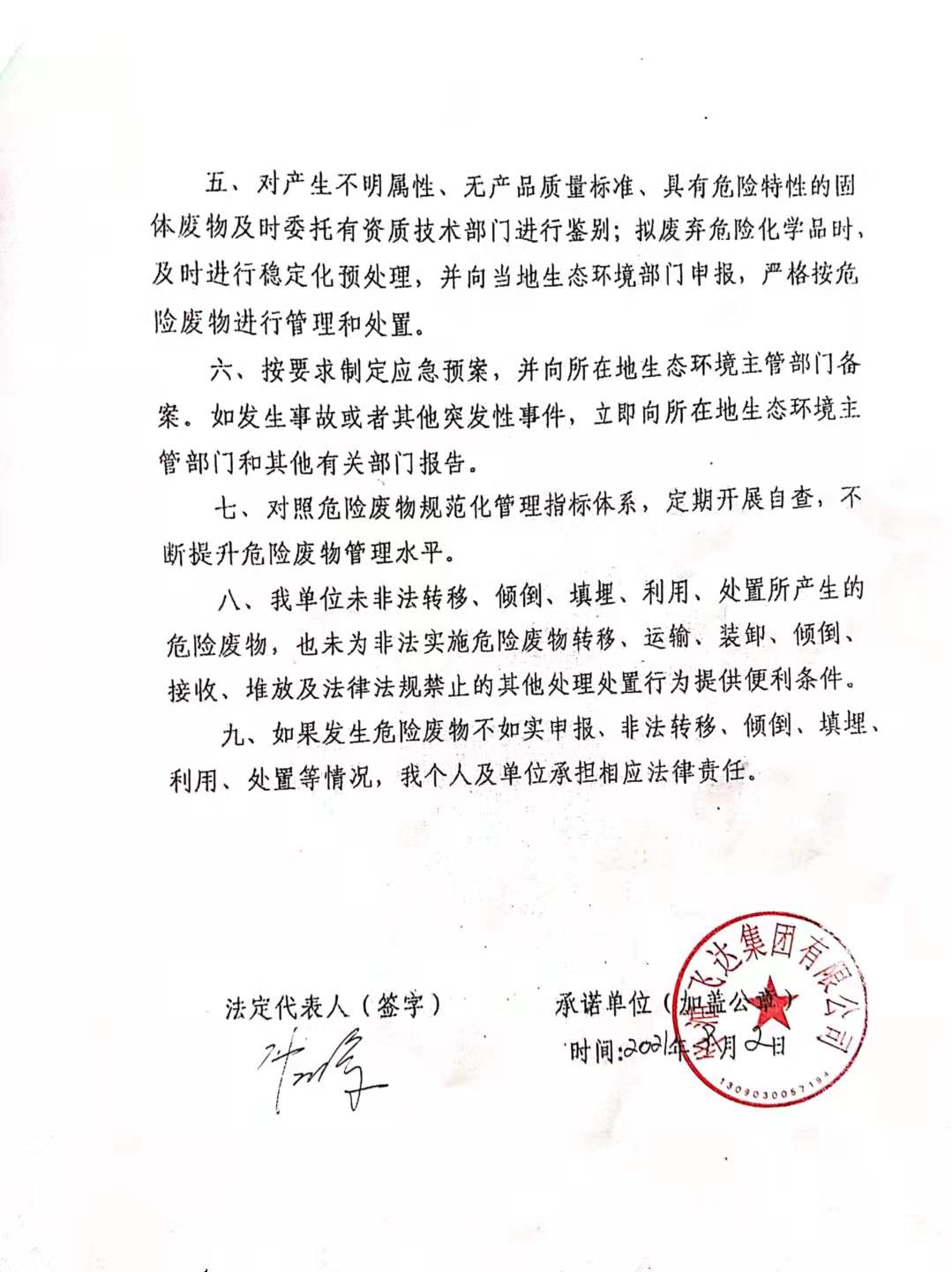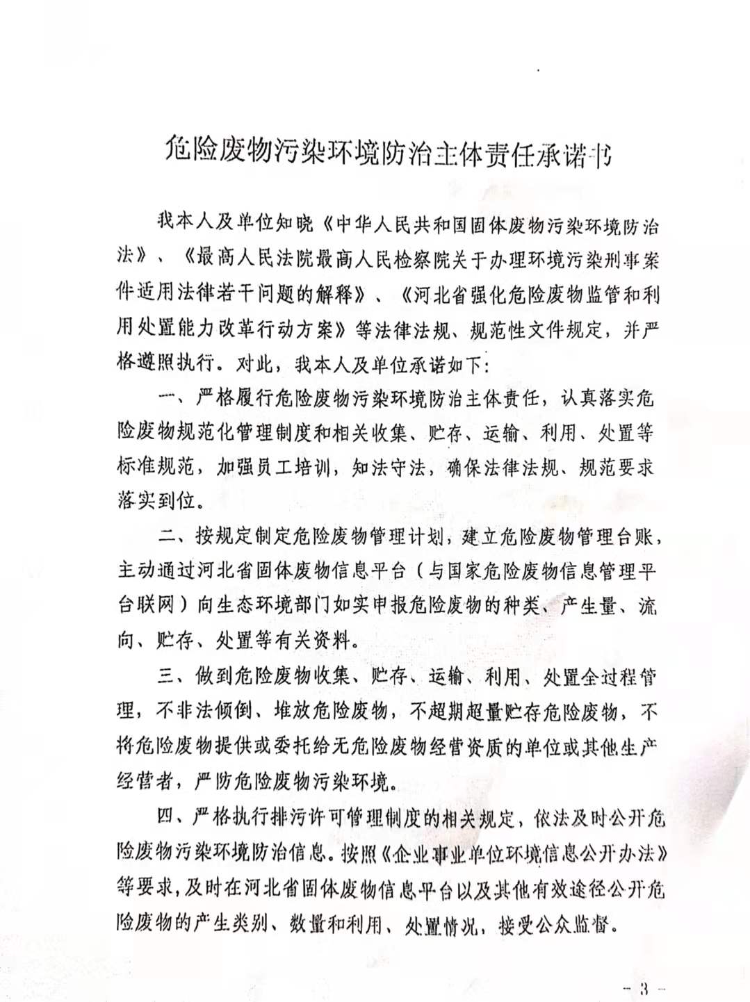 2021年9月3日危險(xiǎn)廢物污染環(huán)境防治主體責(zé)任承諾書
