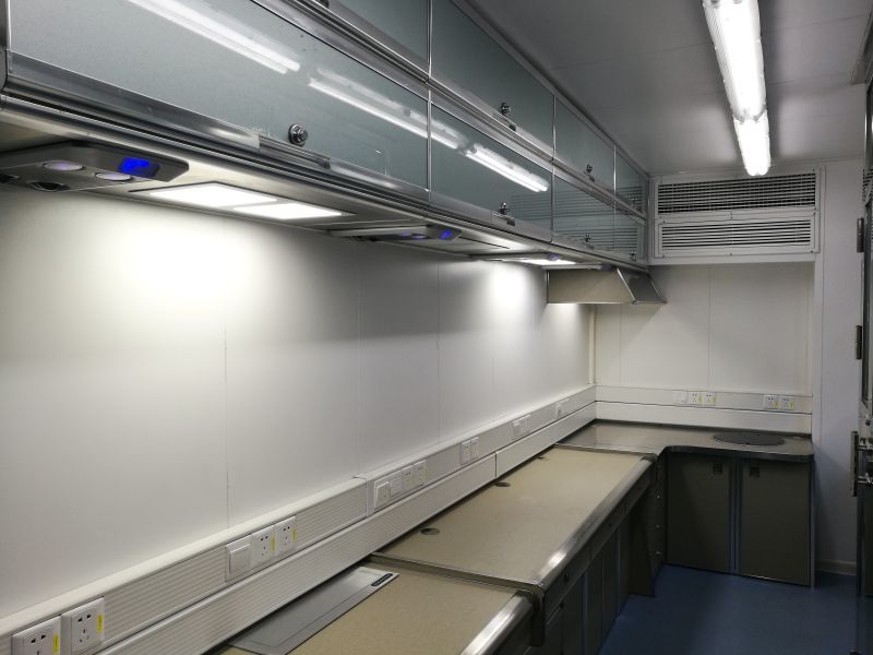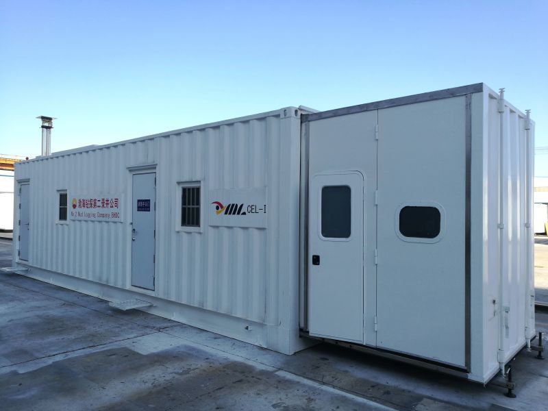 拓展式錄井儀器房:鋼結(jié)構(gòu)焊制的集裝箱式營房,房體承重能力強,吊裝運輸不變形。與普通野營房相比,該營房防火級別要求高,室內(nèi)裝修選用檔次的船用舾裝板裝飾,并安裝防火的門窗及逃生門等設(shè)施。